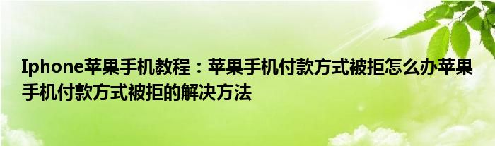 如今使用蘋果手機的小伙伴們是越來越多了,那么蘋果手機當中是有很多小技巧的,這些技巧很多小伙伴一般都是不知道如何來實用的,就好比最近就有很多小伙伴們想要知道蘋果手機付款方式被拒怎么辦蘋果手機付款方式被拒的解決方法,那么既然現在大家對于蘋果手機付款方式被拒怎么辦蘋果手機付款方式被拒的解決方法都感興趣,小編就來給大家分享下關于蘋果手機付款方式被拒怎么辦蘋果手機付款方式被拒的解決方法的一些信息吧。