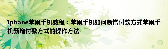 如今使用蘋果手機的小伙伴們是越來越多了,那么蘋果手機當中是有很多小技巧的,這些技巧很多小伙伴一般都是不知道如何來實用的,就好比最近就有很多小伙伴們想要知道蘋果手機如何新增付款方式蘋果手機新增付款方式的操作方法,那么既然現在大家對于蘋果手機如何新增付款方式蘋果手機新增付款方式的操作方法都感興趣,小編就來給大家分享下關于蘋果手機如何新增付款方式蘋果手機新增付款方式的操作方法的一些信息吧。