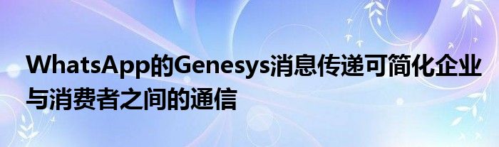 小編發(fā)現(xiàn)不少朋友對(duì)于 WhatsApp的Genesys消息傳遞可簡(jiǎn)化企業(yè)與消費(fèi)者之間的通信 這方面的信息都比較感興趣,小編就針對(duì) WhatsApp的Genesys消息傳遞可簡(jiǎn)化企業(yè)與消費(fèi)者之間的通信 整理了一些相關(guān)方面的信息 在這里分享給大家。