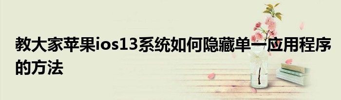 通過以上的方法就可以輕松解決蘋果ios13系統如何隱藏單一應用程序的方法,當然如果大家還有其他更好的方法能夠解決這個問題,也歡迎大家投稿來進行分享。