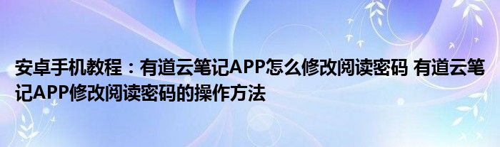 如今使用安卓手機的小伙伴們是越來越多了,那么安卓手機當中是有很多小技巧的,這些技巧很多小伙伴一般都是不知道如何來實用的,就好比最近就有很多小伙伴們想要知道有道云筆記APP怎么修改閱讀密碼 有道云筆記APP修改閱讀密碼的操作方法 ,那么既然現在大家對于有道云筆記APP怎么修改閱讀密碼 有道云筆記APP修改閱讀密碼的操作方法 都感興趣,小編就來給大家分享下關于有道云筆記APP怎么修改閱讀密碼 有道云筆記APP修改閱讀密碼的操作方法 的一些信息吧。