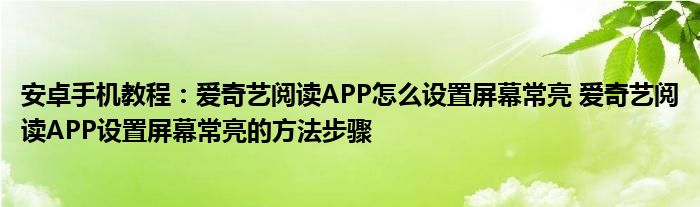 如今使用安卓手機的小伙伴們是越來越多了,那么安卓手機當中是有很多小技巧的,這些技巧很多小伙伴一般都是不知道如何來實用的,就好比最近就有很多小伙伴們想要知道愛奇藝閱讀APP怎么設置屏幕常亮 愛奇藝閱讀APP設置屏幕常亮的方法步驟 ,那么既然現在大家對于愛奇藝閱讀APP怎么設置屏幕常亮 愛奇藝閱讀APP設置屏幕常亮的方法步驟 都感興趣,小編就來給大家分享下關于愛奇藝閱讀APP怎么設置屏幕常亮 愛奇藝閱讀APP設置屏幕常亮的方法步驟 的一些信息吧。