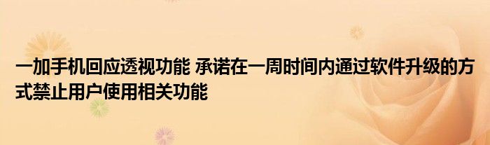 關于到現在一加手機回應透視功能 承諾在一周時間內通過軟件升級的方式禁止用戶使用相關功能這個話題,相信很多小伙伴都是非常有興趣了解的吧,因為這個話題也是近期非常火熱的,那么既然現在大家都想要知道一加手機回應透視功能 承諾在一周時間內通過軟件升級的方式禁止用戶使用相關功能,小編也是到網上收集了一些與一加手機回應透視功能 承諾在一周時間內通過軟件升級的方式禁止用戶使用相關功能相關的信息,那么下面分享給大家一起了解下吧。