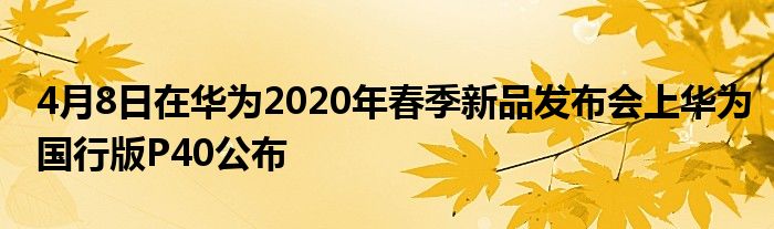 關于到現在4月8日在華為2020年春季新品發布會上華為國行版P40公布這個話題,相信很多小伙伴都是非常有興趣了解的吧,因為這個話題也是近期非常火熱的,那么既然現在大家都想要知道4月8日在華為2020年春季新品發布會上華為國行版P40公布,小編也是到網上收集了一些與4月8日在華為2020年春季新品發布會上華為國行版P40公布相關的信息,那么下面分享給大家一起了解下吧。
