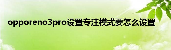 以上就是關于opporeno3pro怎么設置專注模式這方面的小知識了,希望對有需要的小伙伴有所幫助。