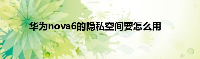 以上就是關于華為nova6隱私空間怎么用這方面的小知識了,希望對有需要的小伙伴有所幫助。