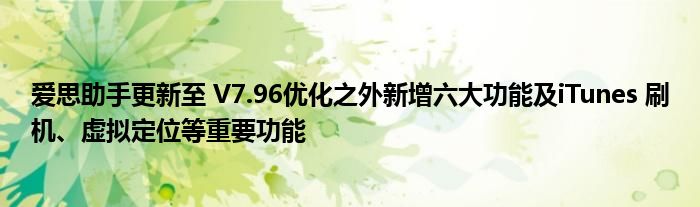 愛思助手V7.96 版新增了以下六大功能: