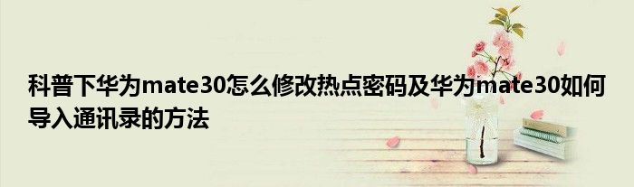 很多小伙伴使用華為mate30,那么華為mate30熱點密碼怎么修改呢?