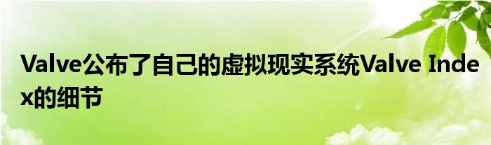 Valve公布了自己的虛擬現實系統Valve Index的細節。