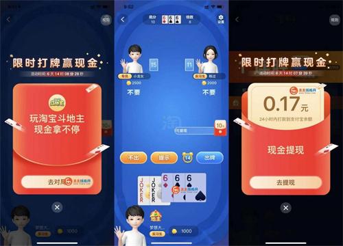 淘寶上線的斗地主大賽游戲,每周都會有對應(yīng)的積分排名,積分靠前的玩家就可以獲得各種各樣的獎勵。參與全國賽獲勝的玩家還有機會獲得汽車以及金條、茅臺等各種特級大獎。斗地主游戲本身就是一種受眾人群非常廣泛的游戲,現(xiàn)在線上的這種游戲方式更加的便捷,吸引更多玩家參與到斗地主游戲玩法當中。玩家可以一起組隊完成任務(wù),也可以選擇單人賽。只要玩家的斗地主技術(shù)足夠好,在這項活動中肯定會獲得各種獎勵。