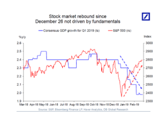 在經歷了大蕭條以來最糟糕的12月之后,標準普爾500指數在30多年中創下了1月份的最佳成績,并將在2月份以強勢票據結束。許多人認為市場驅動因素對于與中國達成貿易協議的不斷增長的樂觀情緒以及美聯儲更加“耐心”的緊縮政策。然而,增長預期并未跟上市場反彈的步伐,一些經濟指標預示著未來會出現更多疲軟。