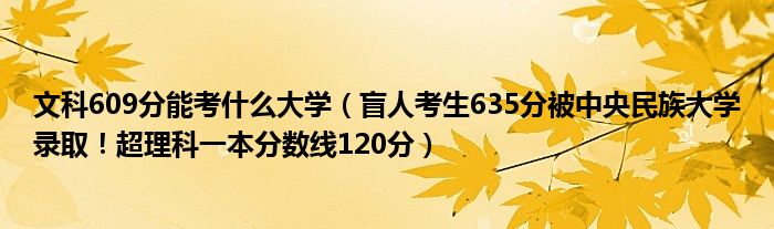 大家好,綜合小編來為大家講解下。文科609分能考什么大學,盲人考生635分被中央民族大學錄取!超理科一本分數線120分很多人還不知道,現在讓我們一起來看看吧!