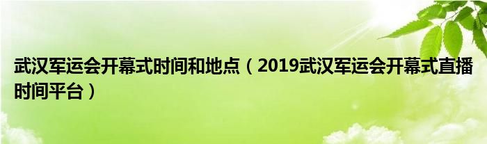 大家好,綜合小編來為大家講解下。武漢軍運會開幕式時間和地點,2019武漢軍運會開幕式直播時間平臺很多人還不知道,現在讓我們一起來看看吧!