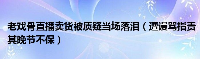 大家好,綜合小編來為大家講解下。老戲骨直播賣貨被質(zhì)疑當場落淚,遭謾罵指責其晚節(jié)不保很多人還不知道,現(xiàn)在讓我們一起來看看吧!
