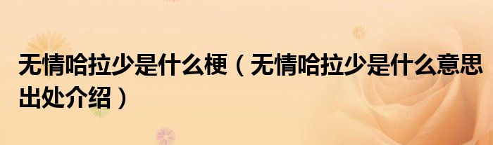 無情哈拉少是什么梗 無情哈拉少是什么意思出處介紹