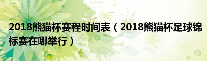 大家好,綜合小編來為大家講解下。2018熊貓杯賽程時間表,2018熊貓杯足球錦標賽在哪舉行很多人還不知道,現在讓我們一起來看看吧!