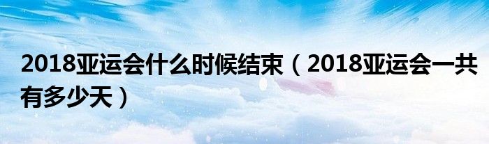 大家好,綜合小編來為大家講解下。2018亞運會什么時候結束,2018亞運會一共有多少天很多人還不知道,現在讓我們一起來看看吧!