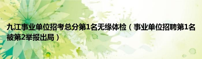 大家好,綜合小編來(lái)為大家講解下。九江事業(yè)單位招考總分第1名無(wú)緣體檢,事業(yè)單位招聘第1名被第2舉報(bào)出局很多人還不知道,現(xiàn)在讓我們一起來(lái)看看吧!