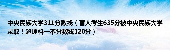 大家好,綜合小編來為大家講解下。中央民族大學311分數線,盲人考生635分被中央民族大學錄取!超理科一本分數線120分很多人還不知道,現在讓我們一起來看看吧!
