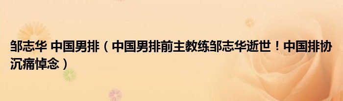 大家好,綜合小編來為大家講解下。鄒志華 中國男排,中國男排前主教練鄒志華逝世!中國排協沉痛悼念很多人還不知道,現在讓我們一起來看看吧!
