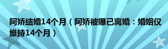 大家好,綜合小編來為大家講解下。阿嬌結婚14個月,阿嬌被曝已離婚:婚姻僅維持14個月很多人還不知道,現在讓我們一起來看看吧!