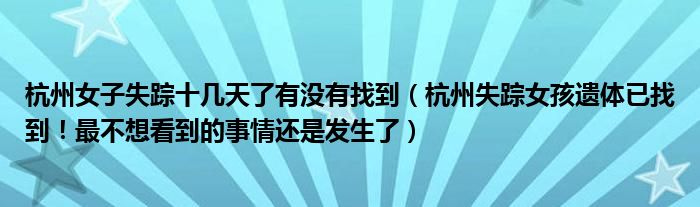 大家好,綜合小編來為大家講解下。杭州女子失蹤十幾天了有沒有找到,杭州失蹤女孩遺體已找到!最不想看到的事情還是發生了很多人還不知道,現在讓我們一起來看看吧!