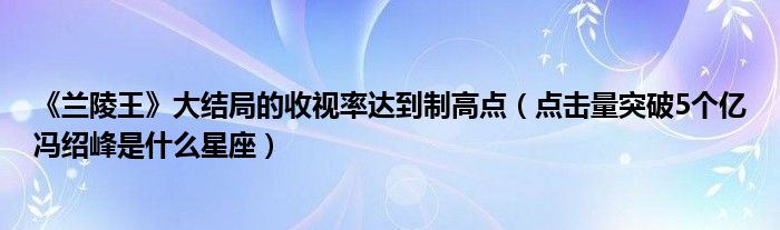 大家好,綜合小編來為大家講解下。《蘭陵王》大結局的收視率達到制高點,點擊量突破5個億馮紹峰是什么星座很多人還不知道,現(xiàn)在讓我們一起來看看吧!