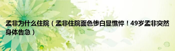 大家好,綜合小編來為大家講解下。孟非為什么住院,孟非住院面色慘白顯憔悴!49歲孟非突然身體告急很多人還不知道,現(xiàn)在讓我們一起來看看吧!