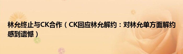 大家好,綜合小編來(lái)為大家講解下。林允終止與CK合作,CK回應(yīng)林允解約:對(duì)林允單方面解約感到遺憾很多人還不知道,現(xiàn)在讓我們一起來(lái)看看吧!
