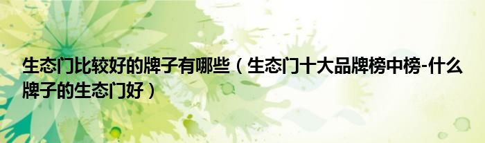 大家好,綜合小編來(lái)為大家講解下。生態(tài)門比較好的牌子有哪些,生態(tài)門十大品牌榜中榜-什么牌子的生態(tài)門好很多人還不知道,現(xiàn)在讓我們一起來(lái)看看吧!