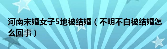 大家好,綜合小編來為大家講解下。河南未婚女子5地被結婚,不明不白被結婚怎么回事很多人還不知道,現(xiàn)在讓我們一起來看看吧!