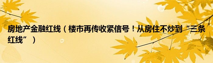 大家好,綜合小編來為大家講解下。房地產(chǎn)金融紅線,樓市再傳收緊信號(hào)!從房住不炒到“三條紅線”很多人還不知道,現(xiàn)在讓我們一起來看看吧!