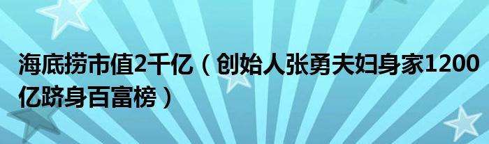 大家好,綜合小編來為大家講解下。海底撈市值2千億,創始人張勇夫婦身家1200億躋身百富榜很多人還不知道,現在讓我們一起來看看吧!