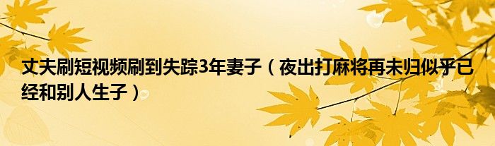 大家好,綜合小編來(lái)為大家講解下。丈夫刷短視頻刷到失蹤3年妻子,夜出打麻將再未歸似乎已經(jīng)和別人生子很多人還不知道,現(xiàn)在讓我們一起來(lái)看看吧!