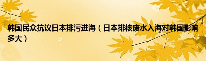 大家好,綜合小編來(lái)為大家講解下。韓國(guó)民眾抗議日本排污進(jìn)海,日本排核廢水入海對(duì)韓國(guó)影響多大很多人還不知道,現(xiàn)在讓我們一起來(lái)看看吧!