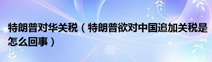 大家好,綜合小編來為大家講解下。特朗普對華關稅,特朗普欲對中國追加關稅是怎么回事很多人還不知道,現在讓我們一起來看看吧!