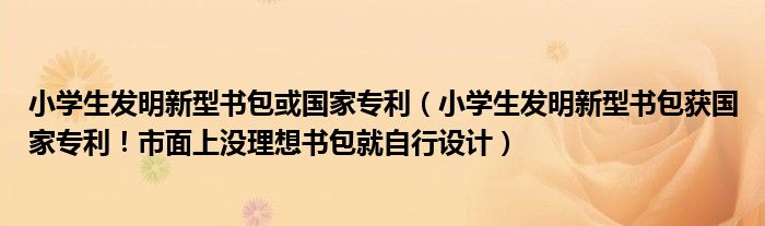 大家好,綜合小編來為大家講解下。小學生發明新型書包或國家專利,小學生發明新型書包獲國家專利!市面上沒理想書包就自行設計很多人還不知道,現在讓我們一起來看看吧!