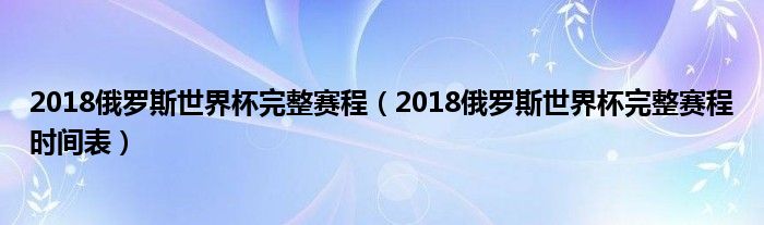 大家好,綜合小編來為大家講解下。2018俄羅斯世界杯完整賽程,2018俄羅斯世界杯完整賽程時間表很多人還不知道,現在讓我們一起來看看吧!