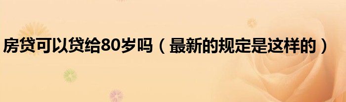 大家好,綜合小編來為大家講解下。房貸可以貸給80歲嗎,最新的規定是這樣的很多人還不知道,現在讓我們一起來看看吧!