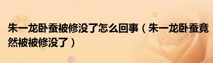 大家好,綜合小編來為大家講解下。朱一龍臥蠶被修沒了怎么回事,朱一龍臥蠶竟然被被修沒了很多人還不知道,現在讓我們一起來看看吧!