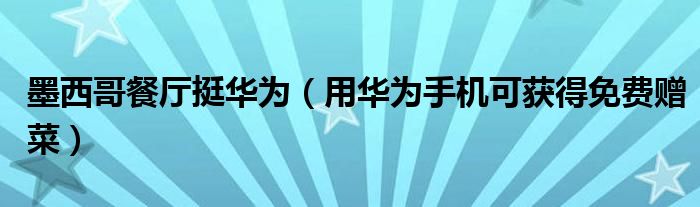 大家好,綜合小編來為大家講解下。墨西哥餐廳挺華為,用華為手機可獲得免費贈菜很多人還不知道,現在讓我們一起來看看吧!