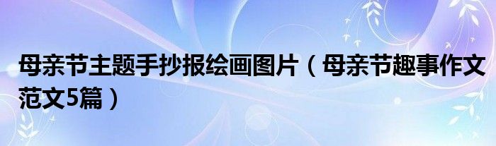 大家好,綜合小編來為大家講解下。母親節主題手抄報繪畫圖片,母親節趣事作文范文5篇很多人還不知道,現在讓我們一起來看看吧!