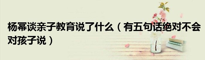 近日楊冪談親自教育的話題受到了很多網友的關注和熱議,很多網友對于楊冪的教育觀都非常認可。楊冪說有五句話她自己絕對不會對孩子說,到底是哪五句話呢?楊冪談親子教育都說了什么?本篇文章小編就為大家帶來來了楊冪談親子教育的詳情內容嗎,一起來看看吧。