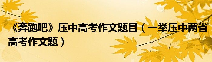 大家好,綜合小編來為大家講解下。《奔跑吧》壓中高考作文題目,一舉壓中兩省高考作文題很多人還不知道,現(xiàn)在讓我們一起來看看吧!