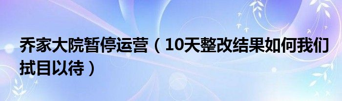 大家好,綜合小編來(lái)為大家講解下。喬家大院暫停運(yùn)營(yíng),10天整改結(jié)果如何我們拭目以待很多人還不知道,現(xiàn)在讓我們一起來(lái)看看吧!