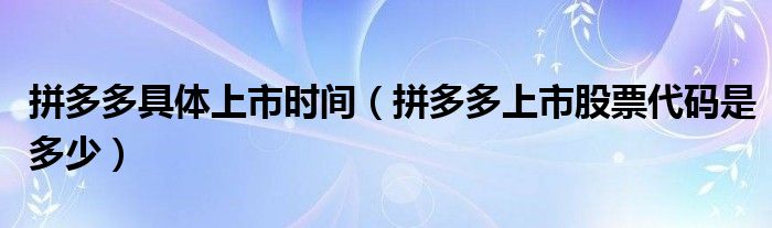 大家好,綜合小編來為大家講解下。拼多多具體上市時(shí)間,拼多多上市股票代碼是多少很多人還不知道,現(xiàn)在讓我們一起來看看吧!