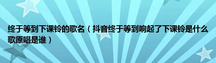 大家好,綜合小編來為大家講解下。終于等到下課鈴的歌名,抖音終于等到響起了下課鈴是什么歌原唱是誰很多人還不知道,現在讓我們一起來看看吧!