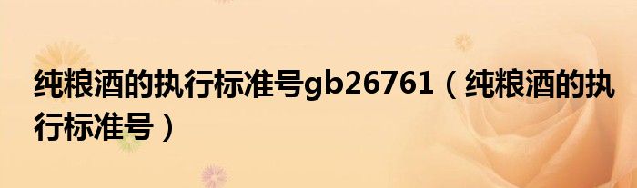 大家好,綜合小編來為大家講解下。純糧酒的執(zhí)行標(biāo)準(zhǔn)號gb26761,純糧酒的執(zhí)行標(biāo)準(zhǔn)號很多人還不知道,現(xiàn)在讓我們一起來看看吧!