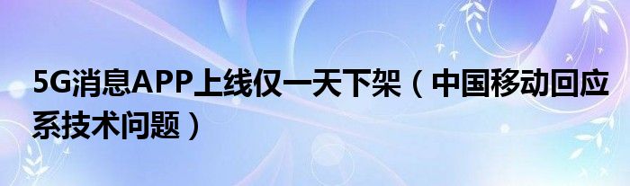 大家好,綜合小編來為大家講解下。5G消息APP上線僅一天下架,中國移動回應系技術問題很多人還不知道,現在讓我們一起來看看吧!