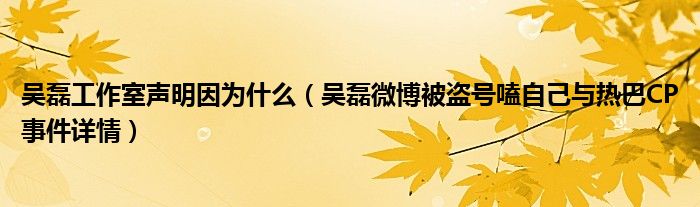 大家好,綜合小編來為大家講解下。吳磊工作室聲明因為什么,吳磊微博被盜號嗑自己與熱巴CP事件詳情很多人還不知道,現在讓我們一起來看看吧!